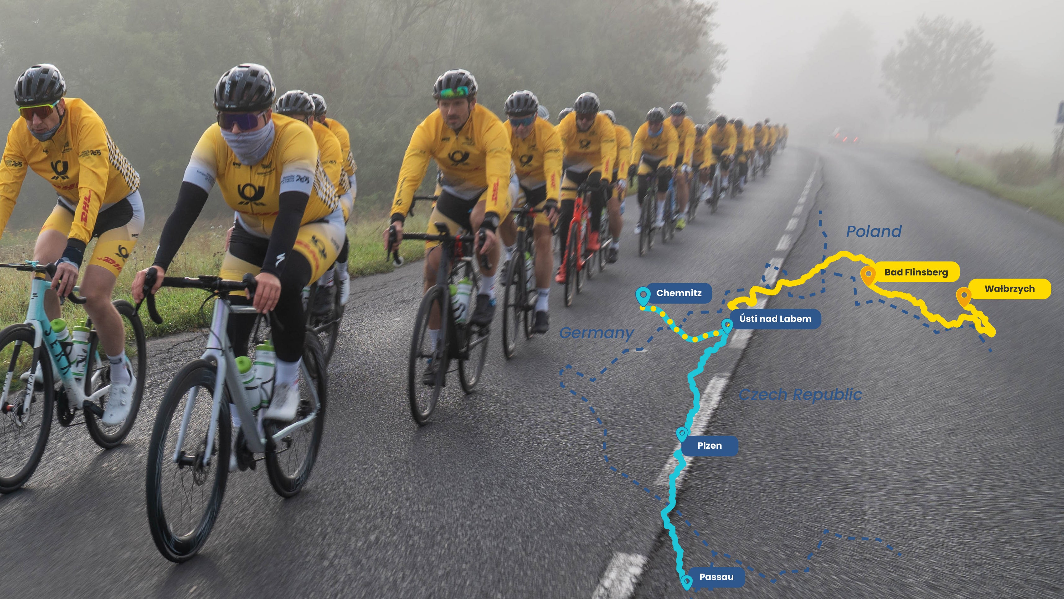 The Polish peloton’s route started in Wałbrzych in 2025, passed through Bad Flinsberg in Poland, and joined the main peloton in Ústí nad Labem in the Czech Republic.