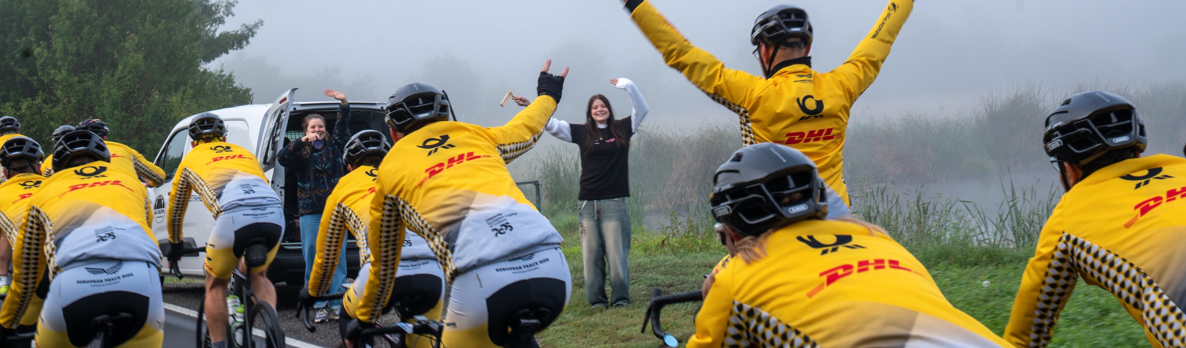 Over roughly 600 kilometers, 250 participants rode together in the peloton, covering about 200 km per stage and conquering 7,500 meters of elevation at 28 km/h – through varied landscapes with challenging climbs and historic locations. A sporting challenge with a strong message for peace and unity.